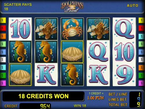 Dolphin’s Pearl — это классический видеослот с 5 барабанами и 9 линиями выплат. Главная тематика игры посвящена подводному царству: на экране вы увидите дельфинов, раковины с жемчугом, кораллы и экзотических рыб. Такая атмосфера создает ощущение погружения в глубины океана, где каждое вращение барабанов может принести сокровища.